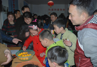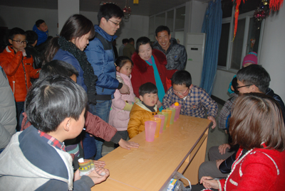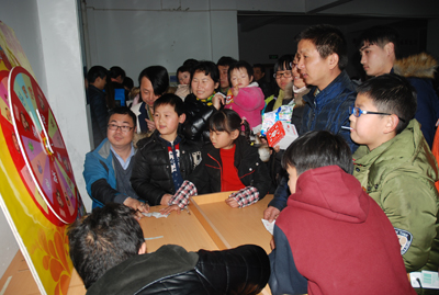 今年的“元宵游園”節目豐富多彩,有猜謎語、投飛標、吹乒乓球、摸彩球、拼成語等,這些活動全部由各分工會設計、承辦。今年的獎品豐富,有微波爐、電飯煲、羊毛被、四件套等等。雖然都是小節目,但每個節目都有小禮品贈送,大大增強了員工的參與積極性,特別是許多員工帶著孩子共同參與,現場上演著一場場“親子秀”,每個人的臉上都洋溢著笑容。