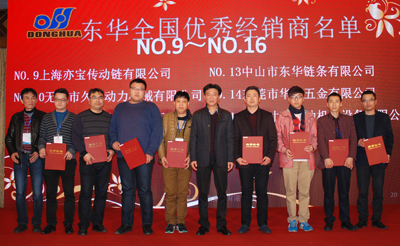 會議期間,宣董事長向東華16名2015年度“優秀經銷商”和盾牌6名“優秀經銷商”頒發了榮譽證書,并合影留戀。