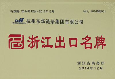 日前,東華集團(DHDONGHUA 牌鏈條被浙江省商務(wù)廳授予“20142017年浙江出口名牌”稱號,并頒發(fā)榮譽證書。該證書的擁有將會加快企業(yè)轉(zhuǎn)型升級,深入實施出口名牌戰(zhàn)略,提高企業(yè)自主品牌的出口比率,增強企業(yè)的外貿(mào)核心競爭力。