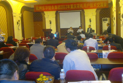 10月19日,重慶杭東鏈條銷售有限公司在重慶怡然大酒店舉行第二屆農機鏈條配套產品技術交流會。參會30多家企業主要來自重慶地區。東華總部特派傳動鏈事業部副部長李奎林、輸送鏈事業部高級工程師閔乃忠參會。