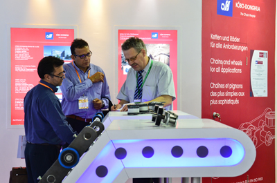 東華從第7屆參展開始已經是第4次參加國際電梯展。本次參加展覽主要以扶梯鏈事業部為主,同時邀請了德國KOBO公司、傳動鏈事業部一起參加。是東華歷屆參加電梯展中展臺規模最大,產品展示最齊全的一次。