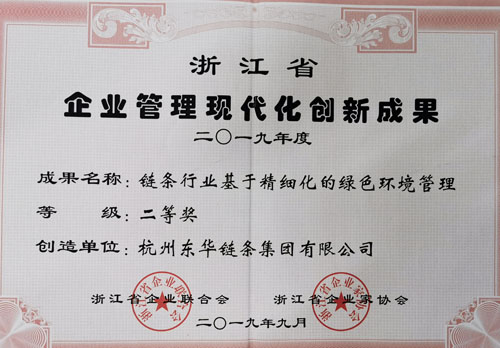 日前,杭州市企業(yè)聯(lián)合會(huì)召開換屆選舉大會(huì),會(huì)上表彰獎(jiǎng)勵(lì)了2019年度杭州市企業(yè)管理現(xiàn)代化創(chuàng)新成果獎(jiǎng),公司由管理部推薦的“鏈條行業(yè)基于精細(xì)化的綠色環(huán)境管理”榮獲杭州市企業(yè)管理現(xiàn)代化創(chuàng)新成果三等獎(jiǎng)。該成果也被浙江省企業(yè)聯(lián)合會(huì)授予浙江省2019年企業(yè)管理現(xiàn)代化創(chuàng)新成果二等獎(jiǎng)稱號(hào)。