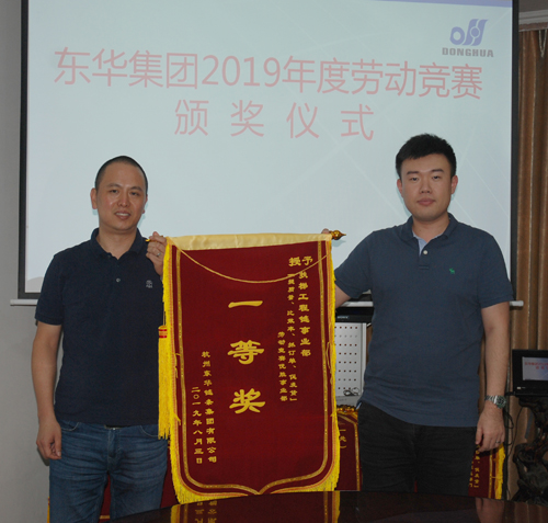 日前,集團公司分別表彰了在“提質量、比效率、抓訂單、促發貨”為主題的勞動競賽中涌現的9個優勝部門和60名勞動競賽積極分子。工會主席魯小林宣讀表彰決定,副董事長宣成向優勝部門頒發錦旗。