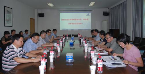8月8日,余杭區市場監管局蔣副局長、朱科長、盧副科長等領導和評審專家一行對開發區2011至2017年榮獲余杭區政府質量獎的企業進行“回頭看”現場審核。集團總工程師葉斌、副總經理袁立華、財務總監趙鵬飛等領導接待了評審組一行。
