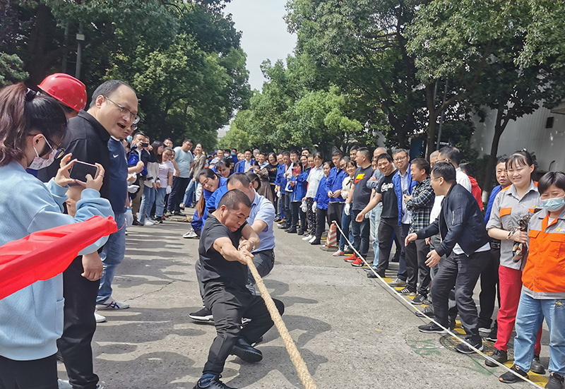 5月14日,“活力東華,精彩亞運”系列活動之拔河比賽在公司總部舉辦。來自各分工會的11支代表隊參加比賽。他們在比賽中發揚團隊精神,增強組織凝聚力;他們為團隊的榮譽而聲嘶力竭,為團隊的榮譽而相互鼓舞,為團隊的榮譽而相互依靠,為團隊的榮譽而相互歡慶,他們用個人的力量凝聚形成了無窮的團隊力量。經過激烈比拼,輸送鏈事業部、裝備事業部、扶梯工程鏈事業部獲前三名。黨委副書記、工會主席魯小林,工會副主席楊海軍頒獎并合影留念。