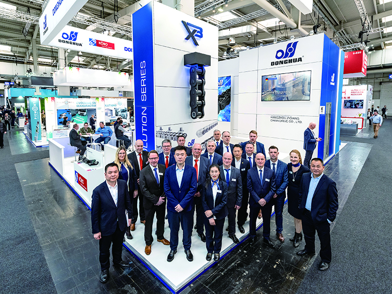 董事長宣成一行第一站參加了2023?德國漢諾威工業博覽會,這是全球暴發疫情以來首次線下正式展會。由公司杭州總部攜手多家海外子公司以積極進取的姿態參加展會。展品包含各類精品鏈條、鏈輪,覆蓋18大行業、60個細分行業應用的各類高端鏈條產品。展示東華鏈條集團高質量發展形象,不斷提升東華自主品牌的影響力。