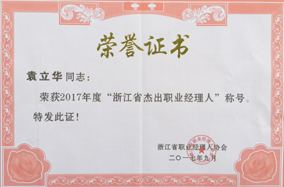集團副總經理袁立華被授予“浙江省杰出職業經理人”稱號