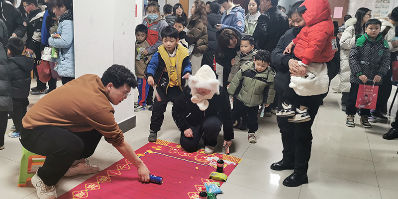 在公寓職工活動室,到處高掛著喜慶的燈籠,洋溢著節日的氛圍。公司各事業部、職能部門共12個分工會分別設置游戲節目,不僅有元宵節傳統的猜燈迷、投壺、飛鏢、套圈、投沙包等,也有新意的倒著說、掌上明珠、財源滾滾、摸彩珠等豐富多彩的小節目。現場隨處可見員工們帶著孩子一起參加活動,他們互相合作,協調配合完成各種游戲活動,大大增進了親子之間的互動交流。
