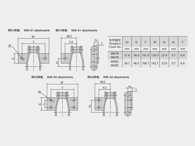 ● 工程用焊接結(jié)構(gòu)彎板鏈按照ASME B29.16M《鋼制焊接工程鏈、附件和鏈輪齒形》和ISO 6972《焊接結(jié)構(gòu)工程用彎板鏈、附件和鏈輪》設(shè)計(jì)和制造,有多種附件可供選擇,也可以按照用戶需求進(jìn)行定制開(kāi)發(fā)。